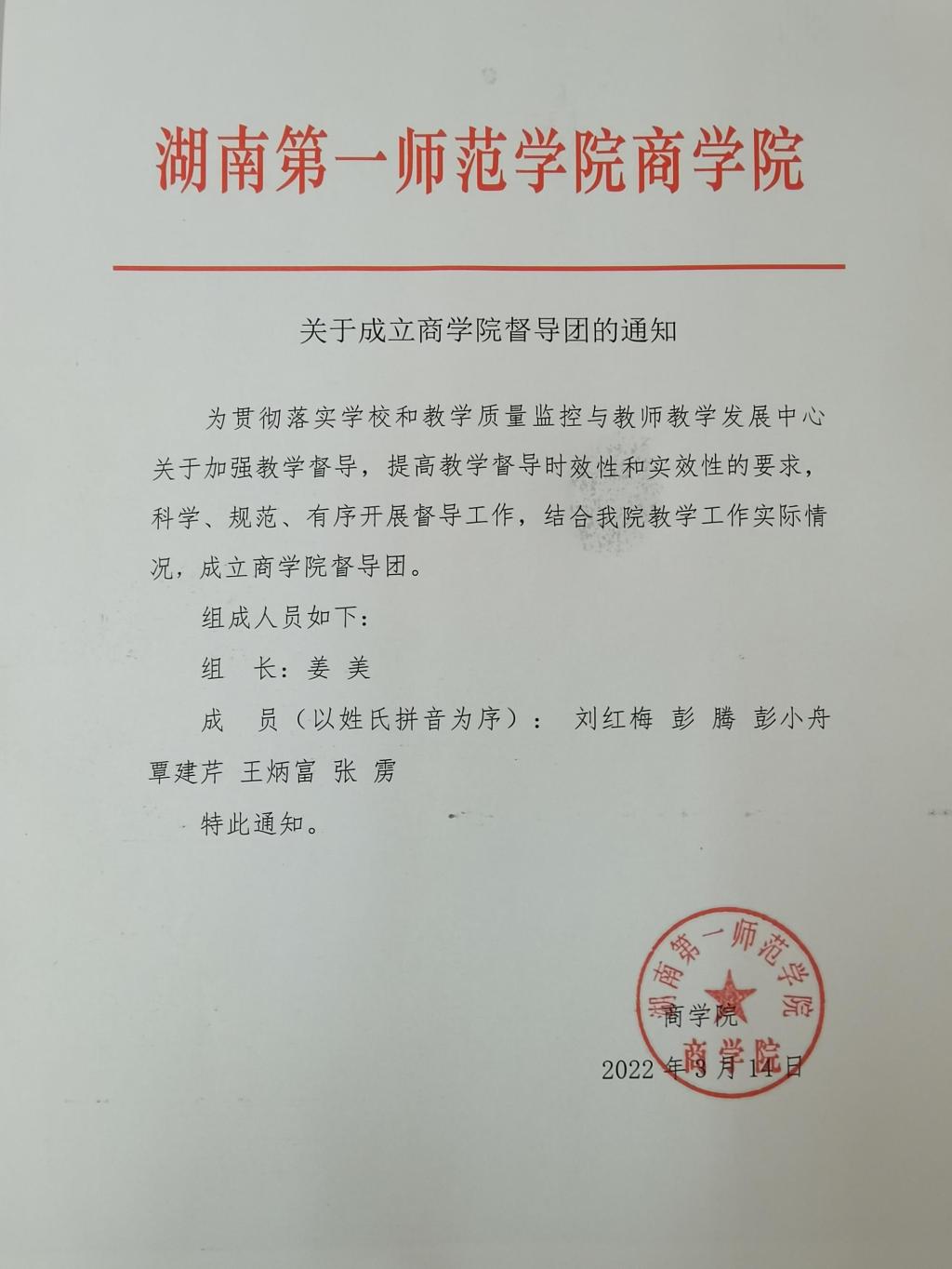 关于成立商学院督导团的通知