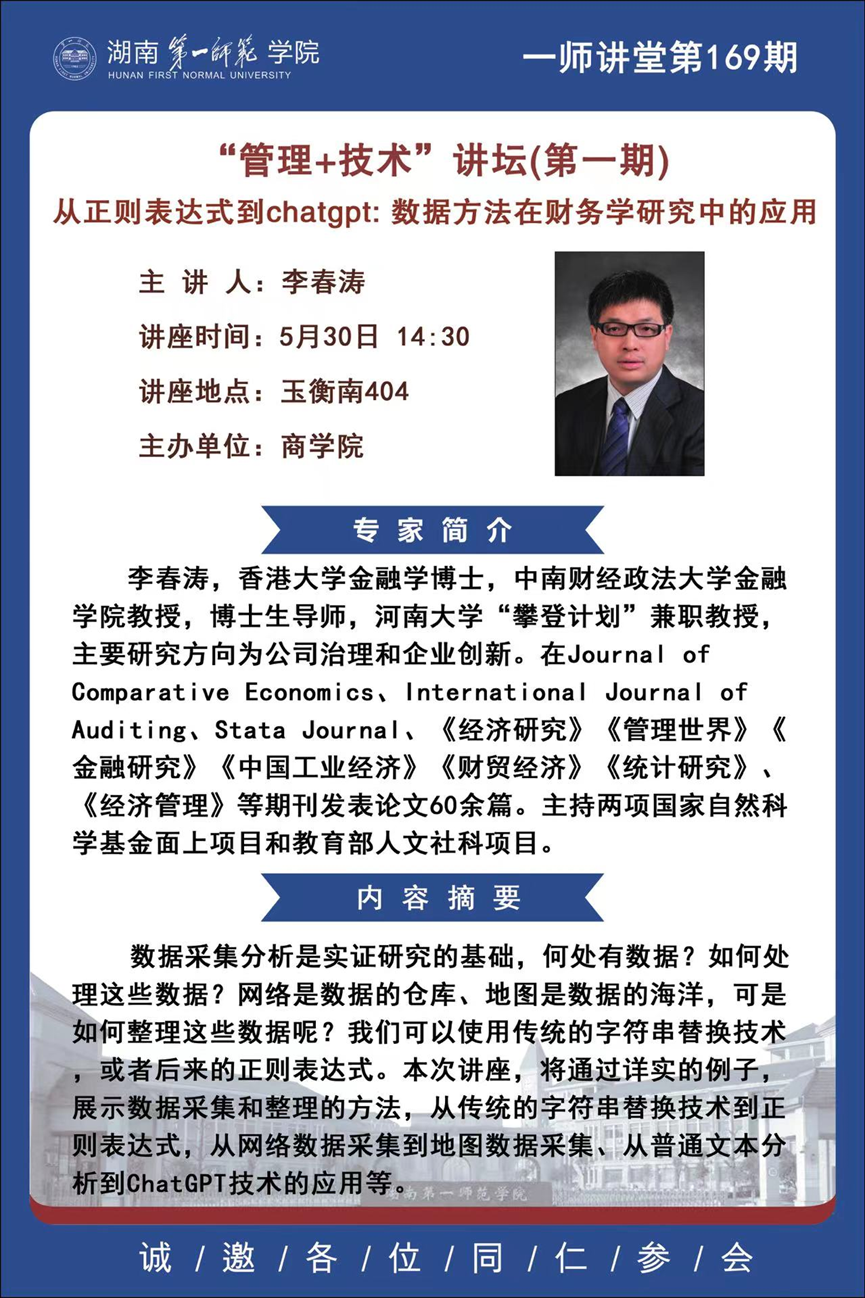 “管理+技术”讲坛第一期:从正则表达式到chatgpt: 数据方法在财务学研究中的应用