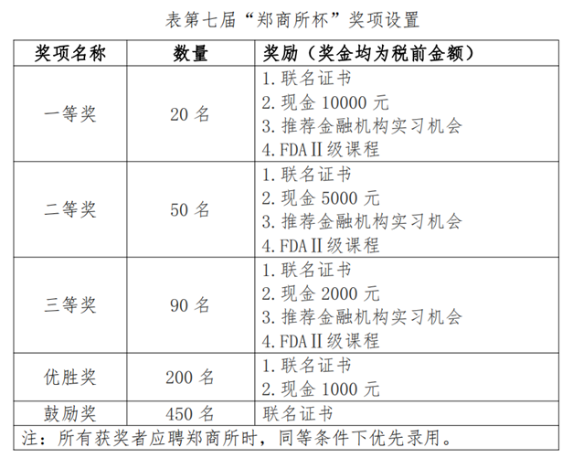 郑州商品交易所(以下简称郑商所)联合中国期货业协会(以下简称中期协)举办第七届“郑商所杯”全国大学生金融模拟交易大赛(以下简称“郑商所杯”),具体事项请参看附件。请同学们踊跃参加。报名时间和报名方式如下: