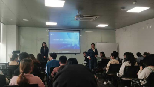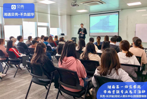 大型直营的链家地产(防城港门店)的2位营销经理给学生们详细讲解营销业务、业务流程、市场开发经验,并分享了自己的营销经历和心路历程。