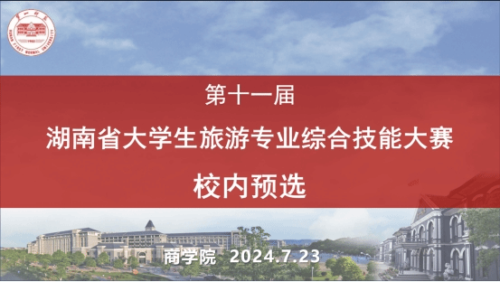 根据湖南省教育厅《关于组织举办2024年全省普通高校大学生学科竞赛的通知》《湖南省大学生旅游专业综合技能大赛章程》的规定,为进一步强化旅游管理专业实践教学环节,培养学生分析和解决实际旅游问题的能力,提升专业综合技能,选拔优秀团队参加湖南省教育厅即将举办的第十一届湖南省大学生旅游类专业综合技能竞赛,7月23日,我校旅游学院举行第十一届湖南省大学生旅游专业综合技能大赛校内预选赛。