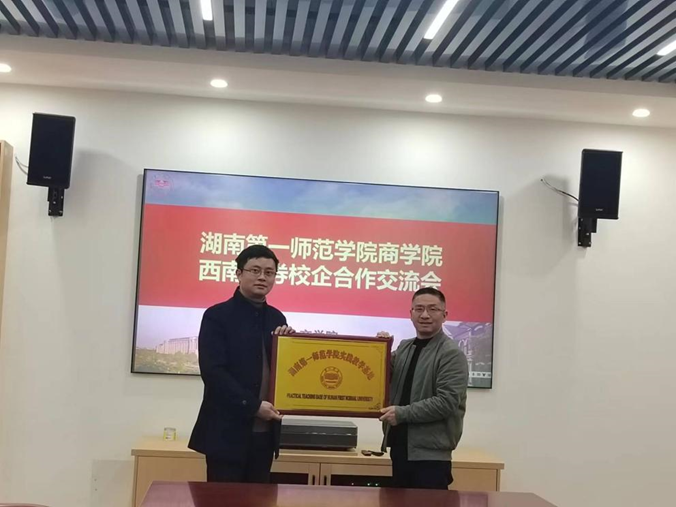 2024年3月11日下午,西南证券湖南分公司何起宏总经理一行来我院开展校企交流活动。商学院院长王朝晖、副院长荆龙姣、教务办主任出席会议。