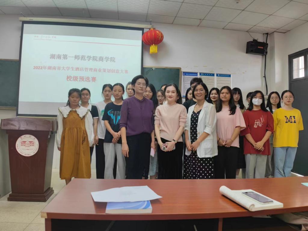 为进一步激发和培养高校旅游管理及大商科类专业学生的学习思维能力、研究创新能力、实践操作能力和团队协作精神,2022年8月30日下午,我院在东方红校区玉衡楼南604多功能教室举办了“2022年湖南省大学生酒店管理商业策划创意大赛”校级选拔赛。