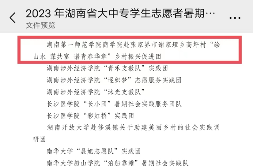 近日,喜讯传来,我院学生“三下乡”团队荣获2023年湖南省大中专学生志愿者暑期文化科技卫生“三下乡”社会实践活动省级重点团队荣誉称号。