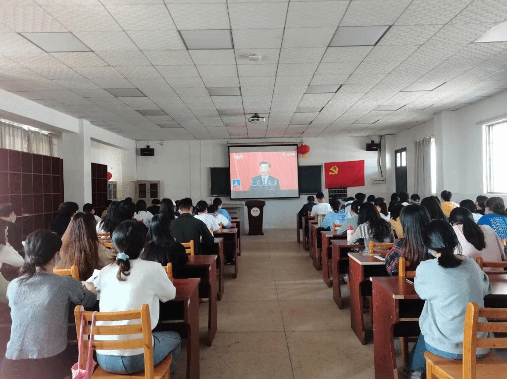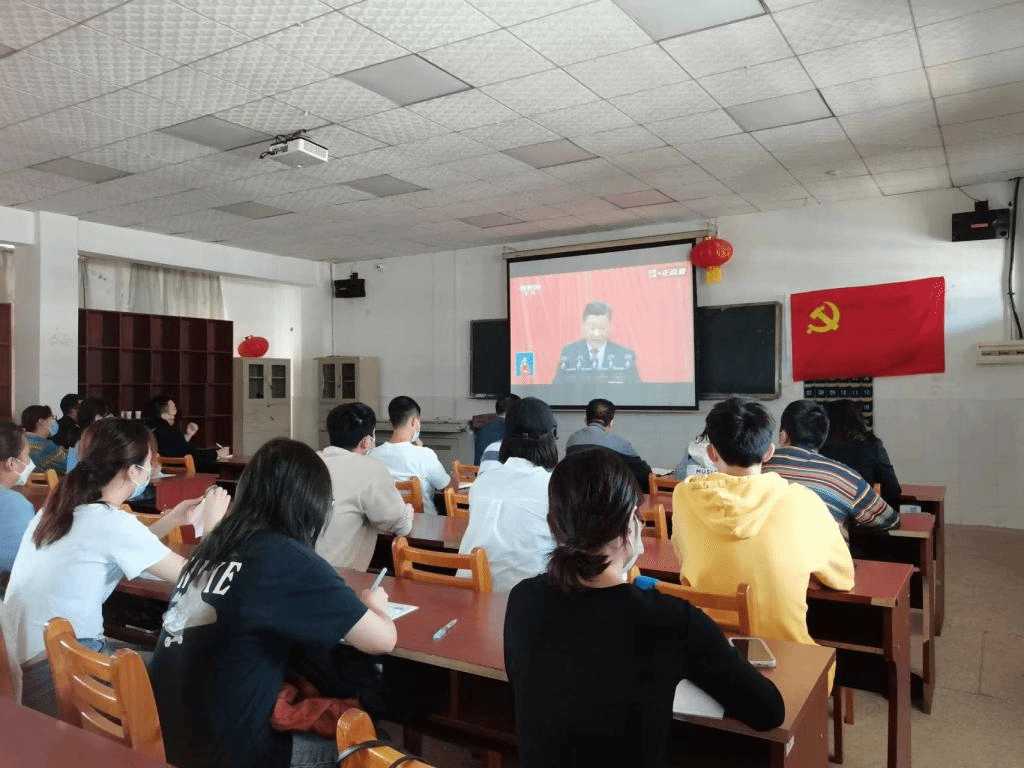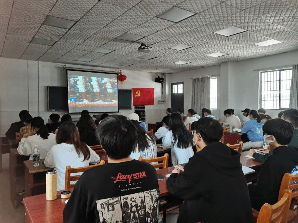 思想之旗领航向,人间正道开新篇。2022年10月16日上午10时,商学院学生党支部以线上线下相结合的形式组织师生党员收看党的二十大开幕式盛况。商学院党委副书记李辉华、组织员蔡冬明、学工办主任梁洋、学生党支部书记冯择佳和20级全体学生党员在玉衡南604教室集体观看二十大开幕式,19级全体学生党员通过腾讯会议线上同步收看直播,共同见证历史的辉煌时刻。