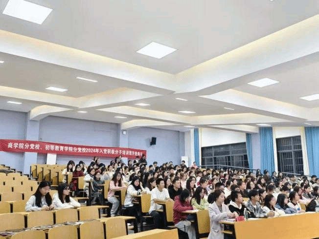 2024年11月5日晚,商学院、初等教育学院分党校在玉衡南101顺利举行了2024年第二期入党积极分子培训班开班典礼。初等教育学院党委书记李宣平、商学院党委书记邓剑、初等教育学院党委副书记马青梅、初等教育学院学生党支部书记冯择佳、商学院学生党支部书记徐红莉和全体入党积极分子参加典礼。开班典礼由徐红莉同志主持。